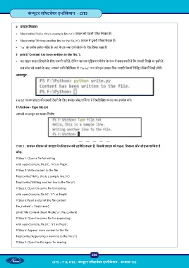 टा 3 : पायथन ो ाम जो फ़ाइल म प रचालन को दिश त करता है, िजसम फ़ाइल को पढ़ना, िलखना और जोड़ना शािमल है