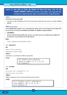 • कोड से ट्स का िनमा ण और िव ेषण करने के िलए पायथन ो ाम डेवलप कर िजसम सूची समझ, टप , सेट और श कोश कॉ ह शन