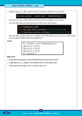 • यह लाइन एक नया datetime ऑ े बनाती है जो वत मान समय से दो घंटे पहले की तारीख और समय को दशा ता है