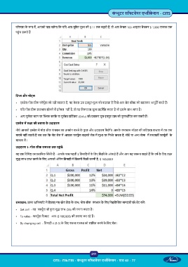 • Set cell - वह फामू ला जो कु ल शु लाभ (D6) की गणना करता है।