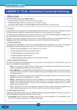 • know about different types of Pressing equipment and methods used in clothing industry.