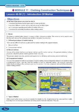 • know about different marker making methods as per the fabric types