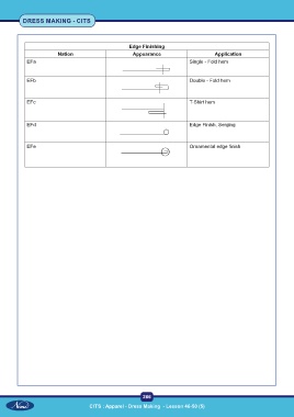DRESS MAKING - CITS Edge Finishing Nation Appearance Application EFa Single - Fold hem EFb Double - Fold hem EFc T-Shirt hem EFd Edge Finish, Serging EFe Ornamental edge finish 266 CITS : Apparel - Dress Making - Lesson 46-50 (5)