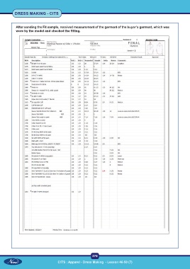 DRESS MAKING - CITS After sending the Fit sample, received measurement of the garment of the buyer’s garment, which was wore by the model and checked the fitting. 276 CITS : Apparel - Dress Making - Lesson 46-50 (7)