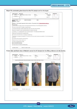 DRESS MAKING - CITS Buyer Fit comments given based on the Fit sample sent to the buyer. Front, Side and Back view of Model’s wored the fit Sample for the fitting reference to the factory. 277 CITS : Apparel - Dress Making - Lesson 46-50 (7)