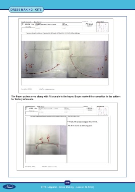 DRESS MAKING - CITS The Paper pattern send along with Fit sample to the buyer. Buyer marked the correction in the pattern for factory reference. 278 CITS : Apparel - Dress Making - Lesson 46-50 (7)
