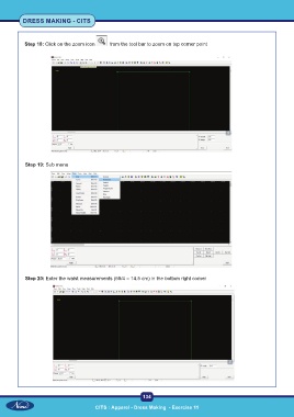 DRESS MAKING - CITS Step 18: Click on the zoom icon from the tool bar to zoom on top corner point Step 19: Sub menu Step 20: Enter the waist measurements (58/4 = 14.5 cm) in the bottom right corner 134 CITS : Apparel - Dress Making - Exercise 11
