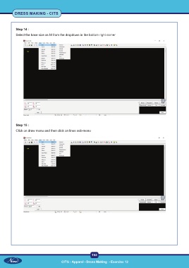 DRESS MAKING - CITS Step 14 : Select the base size as M from the dropdown in the bottom right corner Step 15 : Click on draw menu and then click on lines sub-menu 152 CITS : Apparel - Dress Making - Exercise 12