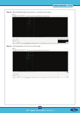 DRESS MAKING - CITS Step 32 : Click on the draw menu, line sub-menu, horizontal sub-sub-menu. Step 33 : Join the back rise to the other end of the length. 195 CITS : Apparel - Dress Making - Exercise 12 CITS : Apparel - Dress Making - Exercise 12