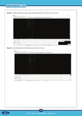 DRESS MAKING - CITS Step 42 : Click on the draw menu, curve sub-menu and 4 point bezier sub-sub-menu. Step 43 : Join the hip line to hem line using the 4 point bezier 200 CITS : Apparel - Dress Making - Exercise 12