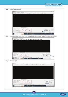 DRESS MAKING - CITS Step 3 : Select Anti-clockwise Step 4 : Input the values in the column, for example Dart depth- 4inch, Width-1inch and Radius-0.05 Step 5 : Click on Apply 217 CITS : Apparel - Dress Making - Exercise 14
