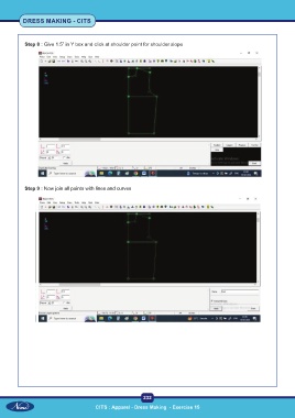 DRESS MAKING - CITS Step 8 : Give 1.5” in Y box and click at shoulder point for shoulder slope Step 9 : Now join all points with lines and curves 232 CITS : Apparel - Dress Making - Exercise 15