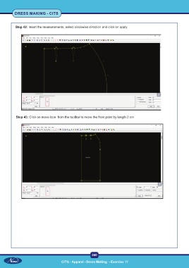 DRESS MAKING - CITS Step 42: Insert the measurements, select clockwise direction and click on apply Step 43: Click on move icon from the toolbar to move the front point by length 2 cm 260 CITS : Apparel - Dress Making - Exercise 17