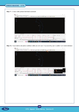 DRESS MAKING - CITS Step 11 : A new collar pattern had been extracted Step 12 : If you want a one piece continue collar you can open it by selecting open a pattern and select all sizes 336 CITS : Apparel - Dress Making - Exercise 21