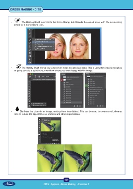 • The Healing Brush is similar to the Clone Stamp, but it blends the copied pixels with the surrounding