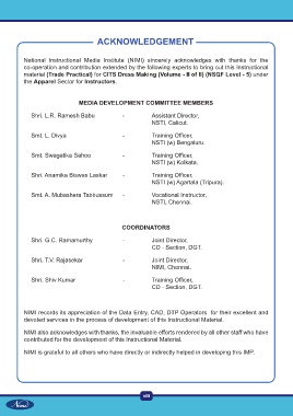 National Instructional Media Institute (NIMI) sincerely acknowledges with thanks for the