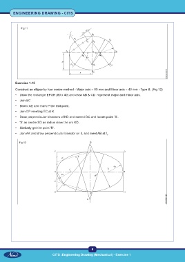 Construct an ellipse by four centre method - Major axis = 80 mm and Minor axis = 40 mm - Type B. (Fig 12)
