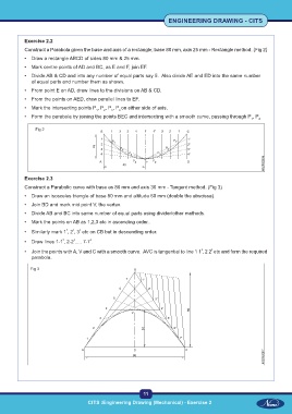 Construct a Parabolic curve with base as 80 mm and axis 30 mm - Tangent method. (Fig 3)