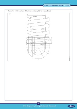 ENGINEERING DRAWING - CITS • Rub of the invisible portions of the helixes and complete the square thread. Fig 5 21 CITS :Engineering Drawing (Mechanical) - Exercise 2