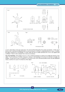 In some cases three views are compulsary. For example Fig 6 shows the three views of a bracket. In this case if