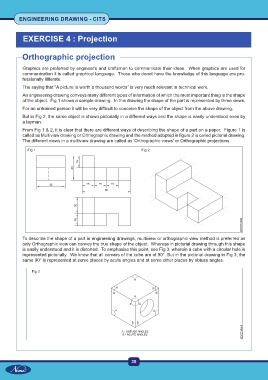 of the object. Fig 1 shows a sample drawing. In this drawing the shape of the part is represented by three views.