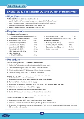 EXERCISE 42 : To conduct OC and SC test of transformer