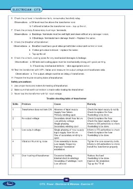 1 Transformer does not turn ON Absence of input supply Check the input supply & rectify