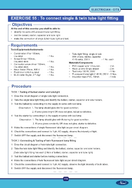 4 Make the connections of twin fluorescent tube light as per circuit diagram.