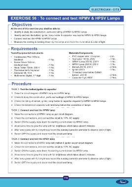 EXERCISE 56 : To connect and test HPMV & HPSV Lamps