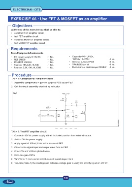 EXERCISE 66 : Use FET & MOSFET as an amplifier