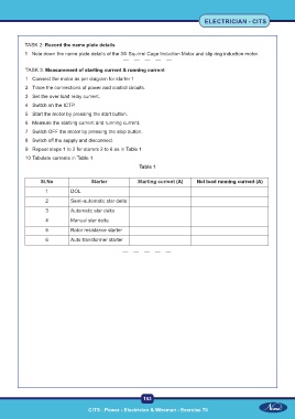Sl.No Starter Starting current (A) Nol load running current (A)
