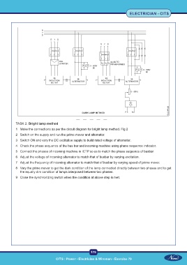 8 Vary the prime mover to get the dark condition of the lamp connected directly between two phases and to get