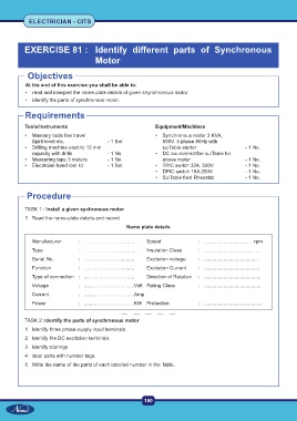 • Masonry tools like travel • Synchronous motor 3 KVA,