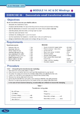 EXERCISE 86 : Demonstrate small transformer winding