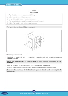 1 Referring to the data taken in Table 5 and as per Fig 1, prepare the bobbin parts from a hylam/fibre sheet of