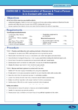 • rescue a person from electric shock and make first Aid treatment & artificial respiration.