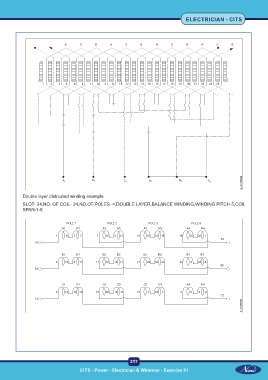 ELECTRICIAN - CITS Double layer distrusted winding example SLOT- 24,NO. OF COIL- 24,NO.OF POLES- 4,DOUBLE LAYER,BALANCE WINDING,WINDING PITCH-5,COIL SPAN-1-6 217 CITS : Power - Electrician & Wireman - Exercise 91