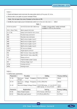 1. Read and interpret and note down the name plate details of the given AC drive.