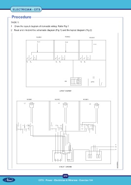 ELECTRICIAN - CITS Procedure TASK 1: 1 Draw the layout diagram of domestic wiring. Refer Fig 1 2 Read and interpret the schematic diagram (Fig 1) and the layout diagram (Fig 2) 272 CITS : Power - Electrician & Wireman - Exercise 104