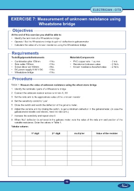 • Operate / Set the Wheatstone bridge to get null deflection in galvanometer