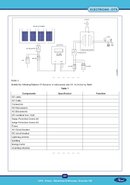 Identify the following Balance Of Systems of solar power plant fill the following Table