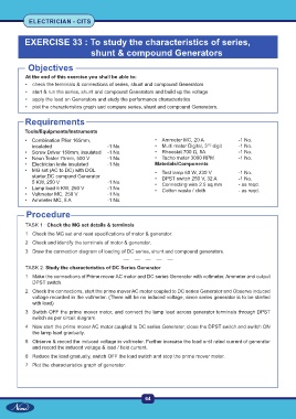 • MG set (AC to DC) with DOL • Test lamp 60 W, 230 V -1 No.