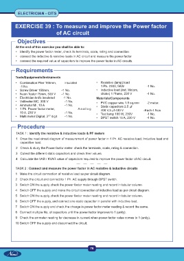 5 Switch ON the supply, check the power factor meter reading and record in tabular column.