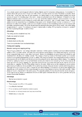 metres above the ground level. Single core VIR or PVC insulated cables are used. Porcelain or wooden cleats
