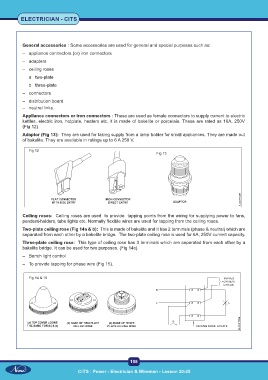 Adaptor (Fig 13): They are used for taking supply from a lamp holder for small appliances. They are made out