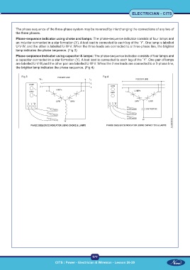 Phase-sequence indicator using choke and lamps: The phase-sequence indicator consists of four lamps and