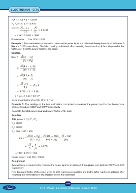 Example 3: The reading on the two wattmeters connected to measure the power input to the three-phase,