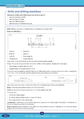 The shank may be parallel or tapered.(Figs 2 & 3) Drills with parallel or straight shanks are made in small sizes,