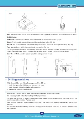 Taper shank drills are held in taper sockets in the machine.(Fig 6c)