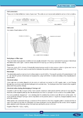 through the electrolyte splits up into hydrogen and sulphate ions. The hydrogen ions travel towards the negative